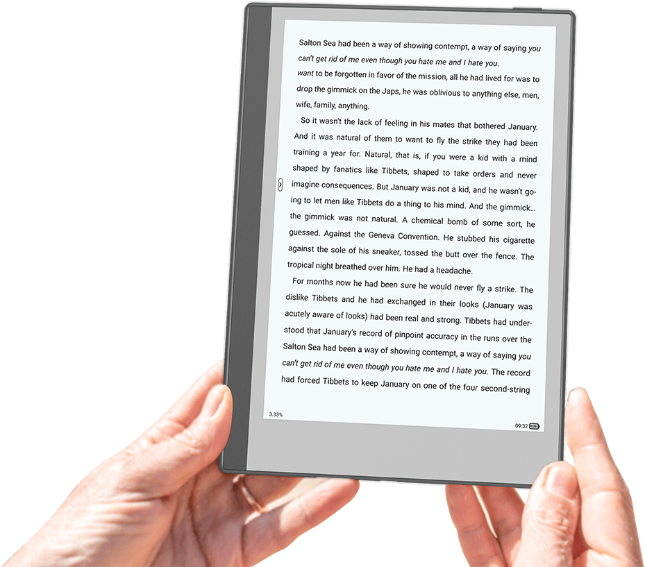 采用全新一代9.7吋电子墨水护眼屏,分辨率达825*1200p,户外阳光直射下依然清晰可见。