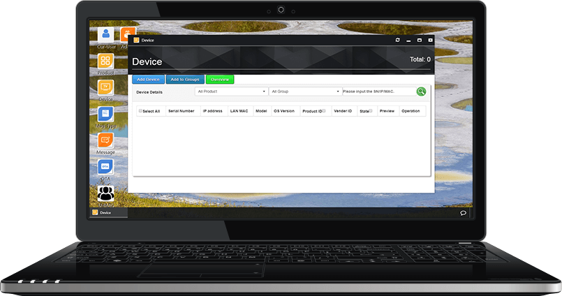 可远程收集设备状态信息及控制设备(更新固件、卸载/安装APK、重启、待机/唤醒、广告实时投放……)