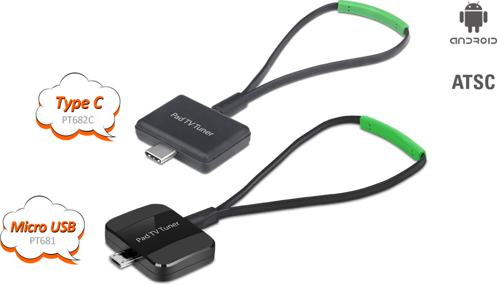 Geniatech Pad TV Tunner可随时随地通过安卓手机或平板观看免费数字电视——无需Wi-Fi或数据流量。支持DVB-T/T2、ATSC及ISDB-T标准,将您的设备变身为播放流畅的便携电视。只需插入Type-C或Micro USB接口,通过PadTV应用即可随时随地畅享直播电视。