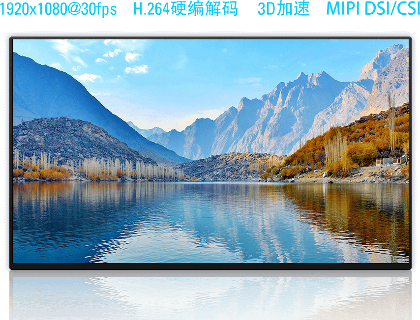 丰富的音视频及触控接口资源,可为显示、音频、摄像头提供扩展支持,满足高清显示、人机交互和图像采集需求,支持H.264 1920×1080@30 fps视频解码,同时具备3D GPU和视频硬件编解码VPU,支持Vulkan、OpenGL、OpenCL,极大提升人机交互体验。