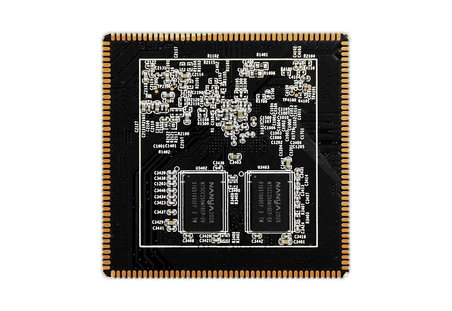 采用邮票孔封装,拥有172个引脚,支持LVDS、MIPI-DSI、MIPI-CSI、SDIO、SD、RMII、USB OTG2.0、USB2.0、I2C、I2S、UART、GPIO等丰富扩展接口,为不同的行业应用提供丰富的外设连接,让项目开发和评估更简单。