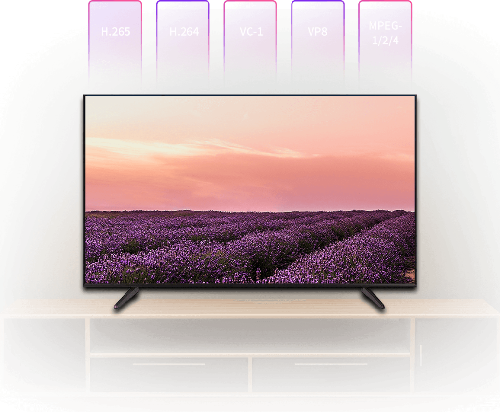 支持H.265、H.264、VC-1、VP8、MPEG-1/2/4格式1080P@60fps视频解码,H.264、VP8格式1080P视频编码,支持双VOP(双屏显示)。