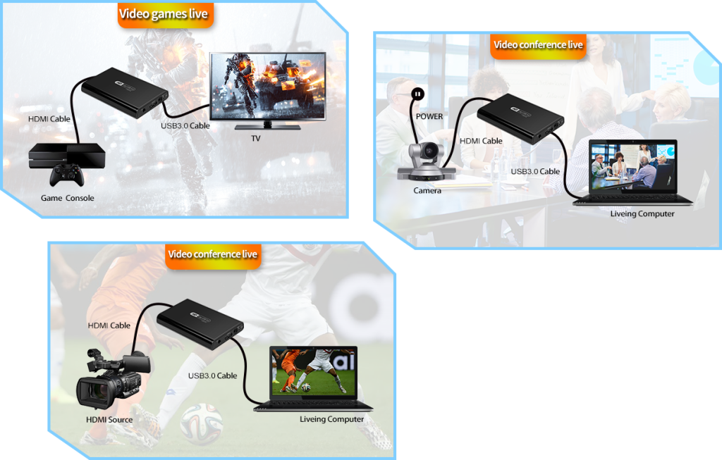 Video Capture uses USB3.0 port, no need power adapter, compatible for USB2.0,low latency, high speed transmission